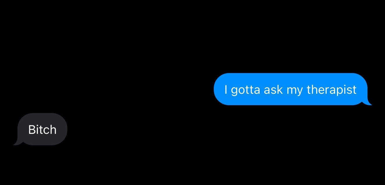 My therapist laughs.